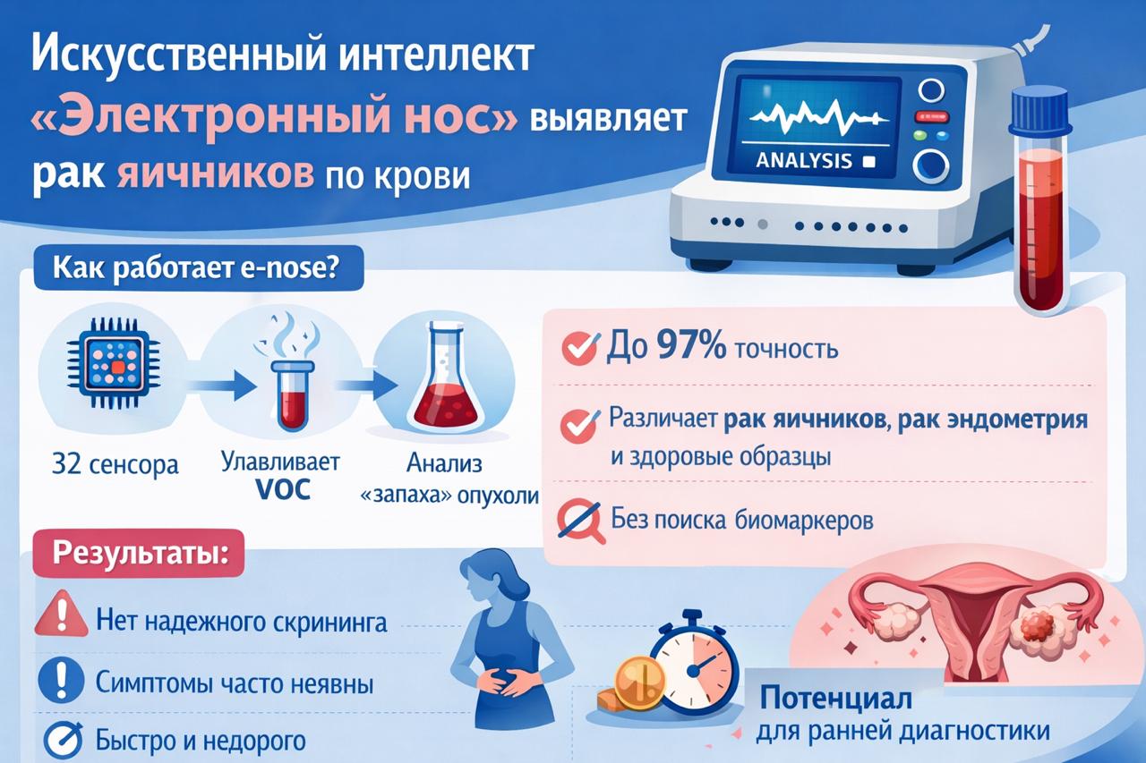 👉 Для рака яичников до сих пор нет надежного скрининга, но, вероятно, и «ИИ-нос» тоже не выход ;)
