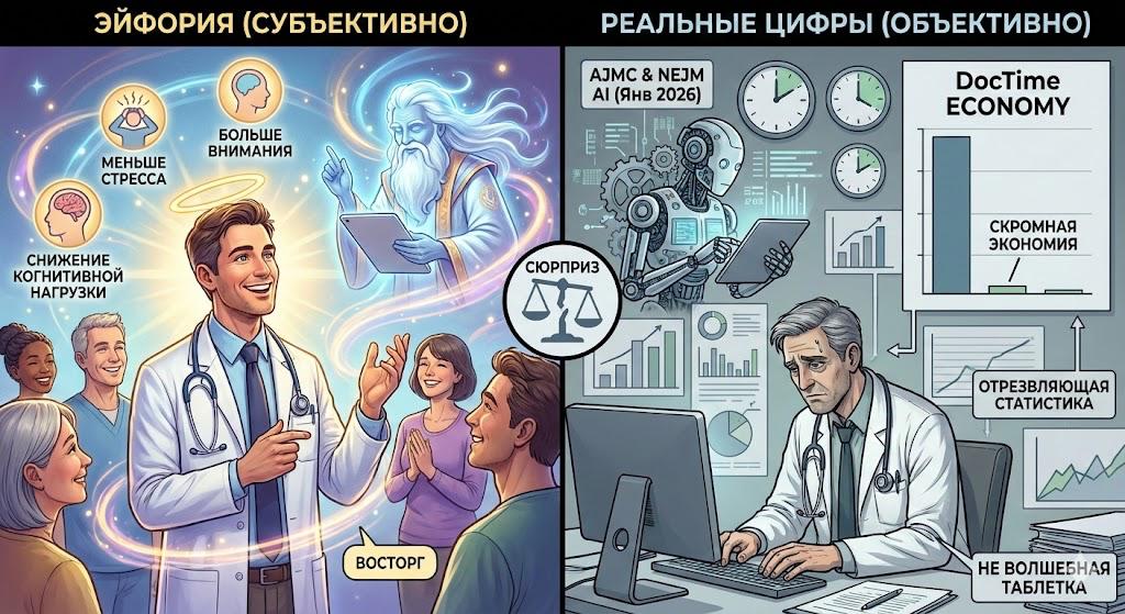 Мы привыкли слышать, что «голосовые медсестры» (Ambient AI) — это волшебная таблетка, которая освободит врачу часы рабочего времени. Свежее исследование в AJMC и NEJM AI (январь 2026) показывает, что всё не так однозначно.